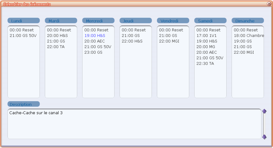 Le calendrier des événements permet aux joueurs de connaître l'occurrence des événements hebdomadaires.