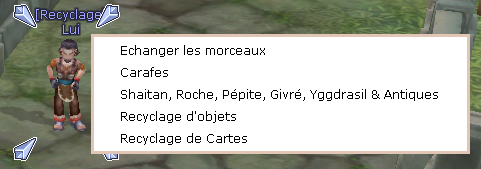 Le système de recyclage est accessible au PNJ \[Recyclage]Lui situé entre autres à Flarine centre.